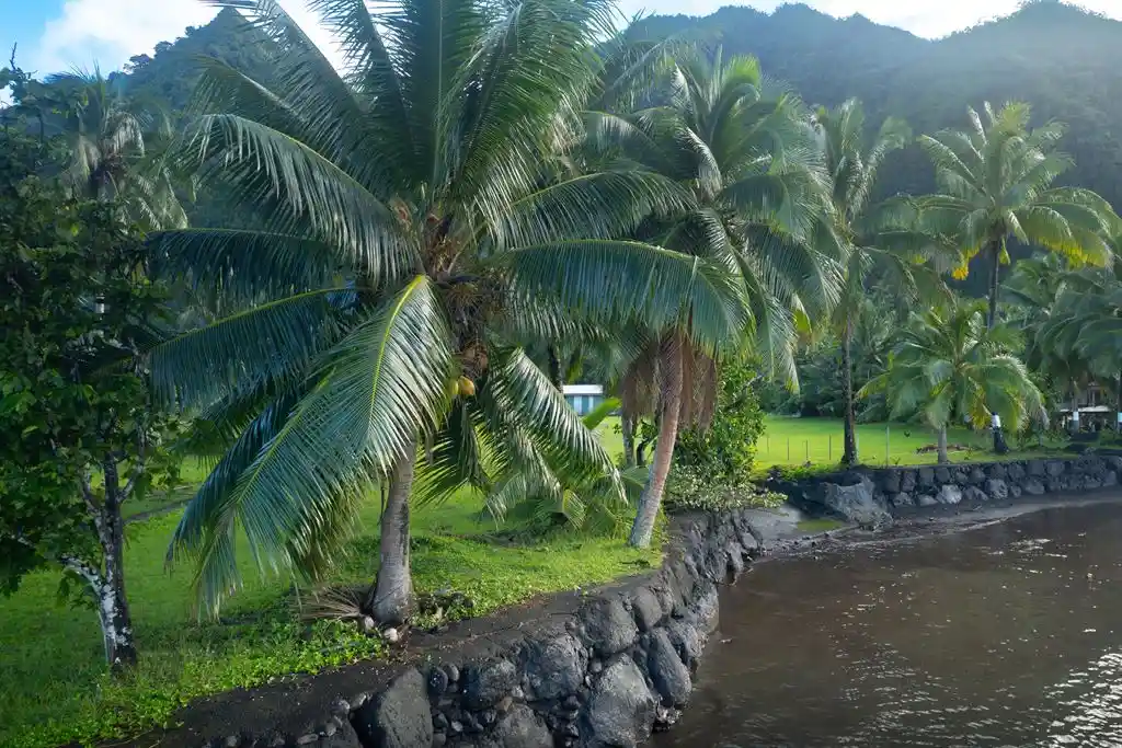 Teahupoo – Amazing plot by the sea of nearly 8000 m², partly planted with fruit trees. A hangar of more than 80 m2 with sanitary facilities offers several possibilities: to accommodate your fishing, surfing, diving, gardening and other equipment, to spend time there, or to be totally transformed! A boat ramp allows you to launch a boat. This place is ideal for those who appreciate the calm of a preserved nature by the sea.