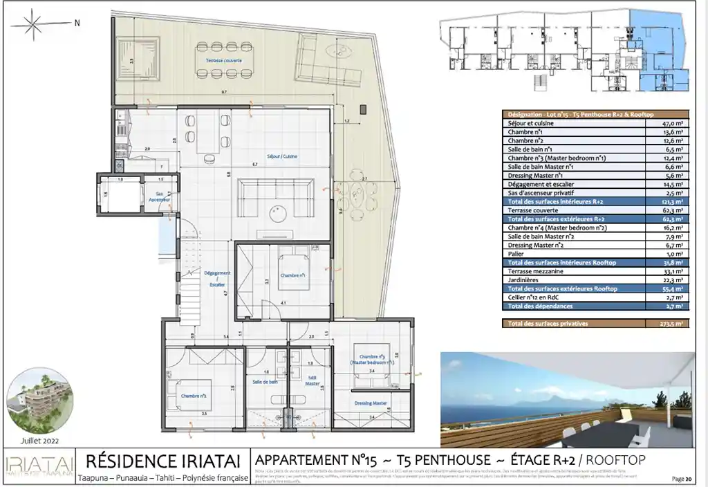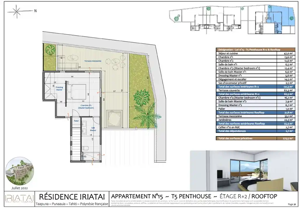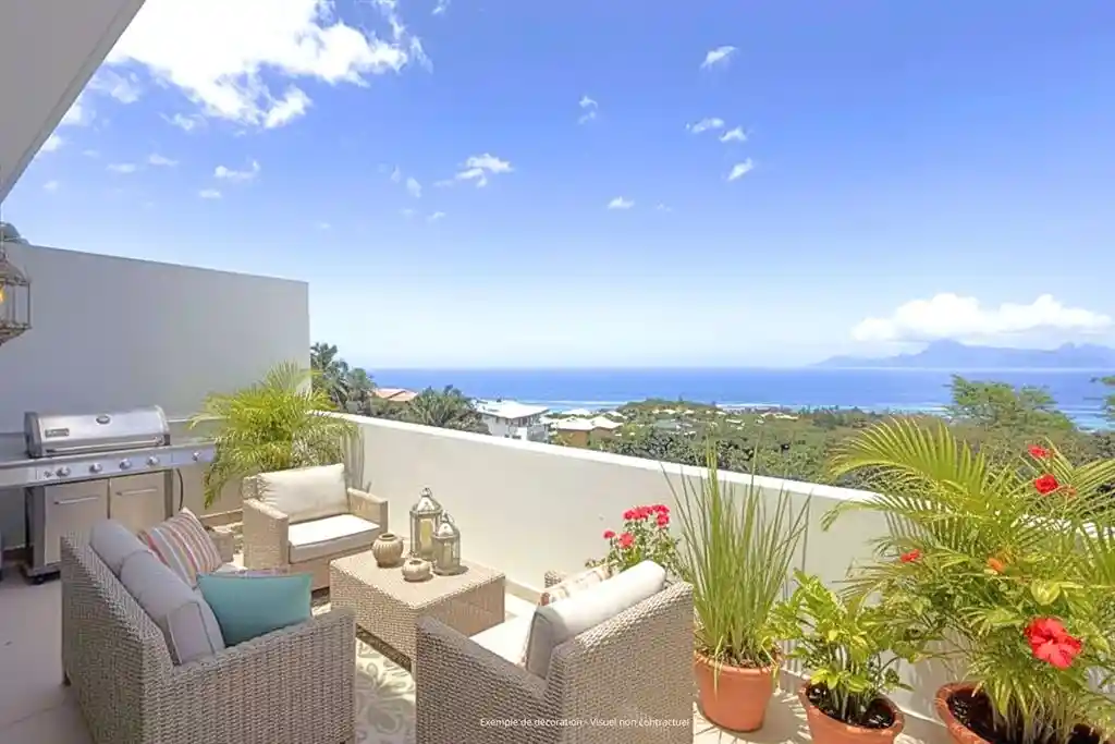 Come and discover this magnificent 153m² penthouse, located in a prestigious residence, scheduled for delivery in December 2025. This rare property offers generous and refined spaces, designed for absolute comfort and elegant living. The main level features a large, light-filled living room, a contemporary open-plan kitchen opening onto a large 675 sq ft terrace. There are also three bedrooms, including a master suite. Upstairs, the master bedroom benefits from a private spa area and breathtaking views of Moorea, with a 330 sq ft rooftop terrace, perfect for recharging your batteries and enjoying the scenery. This superb duplex apartment is ideal for a family, with spaces suited to everyone. The living room terrace is an extension of the living room, opening onto nature. This penthouse also has a private elevator, two parking spaces, and a pantry. Ideally located near shops, schools, and idyllic beaches, it offers a unique living environment between the sea and the mountains.
