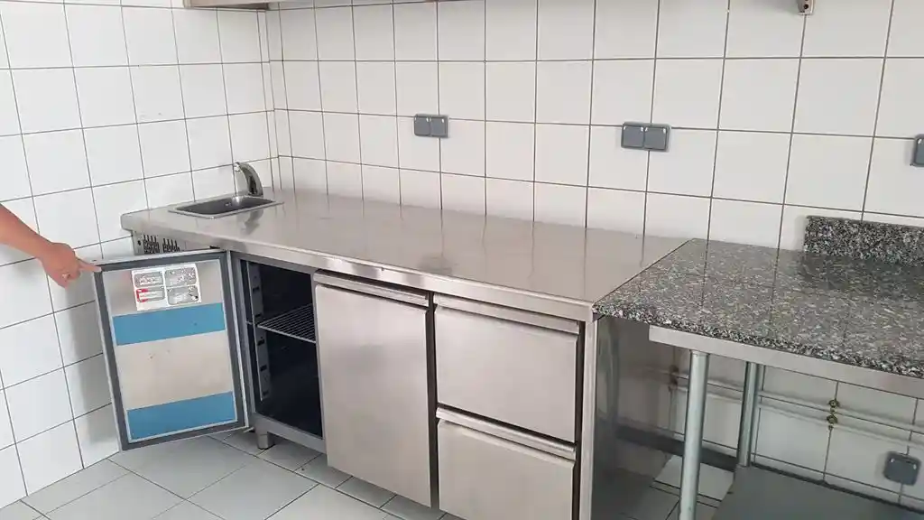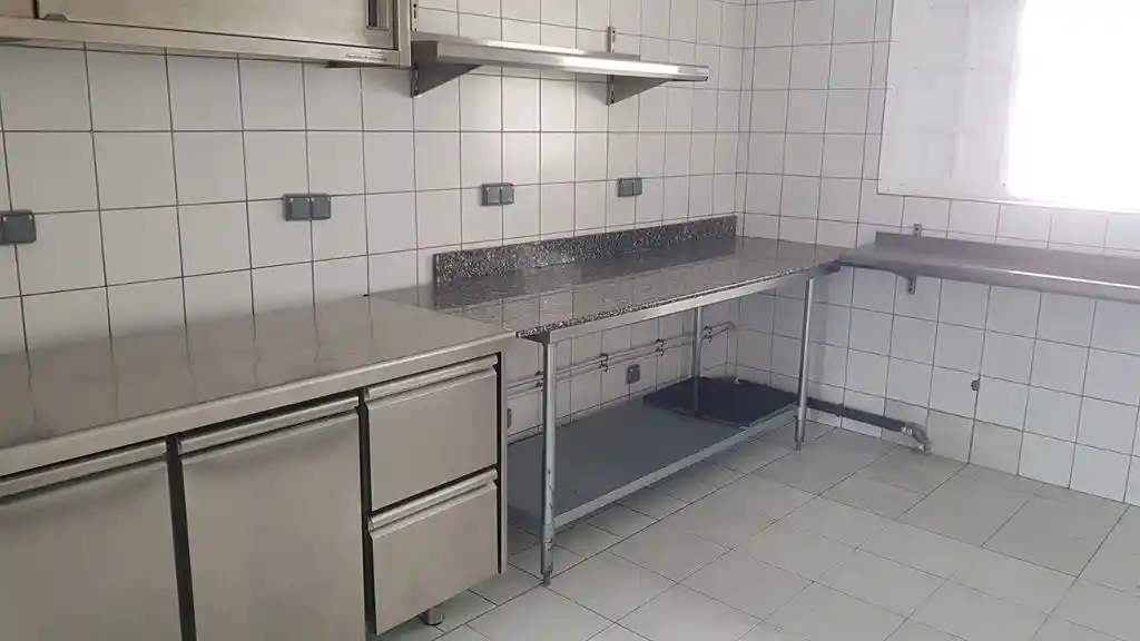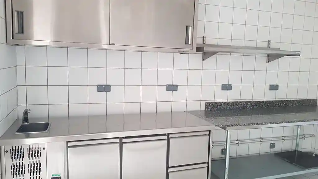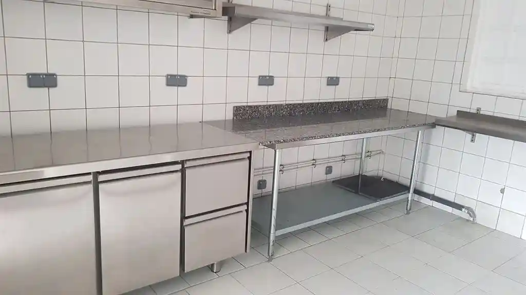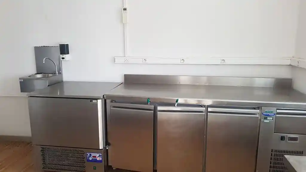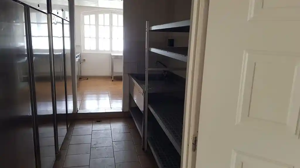 L’ensemble est entièrement équipé pour une activité immédiate. La zone de préparation alimentaire dispose de deux armoires inox de grande capacité, en positif et négatif, ainsi que d’un évier plonge et de rangements adaptés. L’atelier de fabrication, idéal pour des activités de traiteur ou de pâtisserie, comprend un réfrigérateur bas trois portes, un surgélateur, des plans de travail en inox, un lave-mains à commande genoux conforme aux normes d’hygiène, ainsi qu’un système de climatisation.