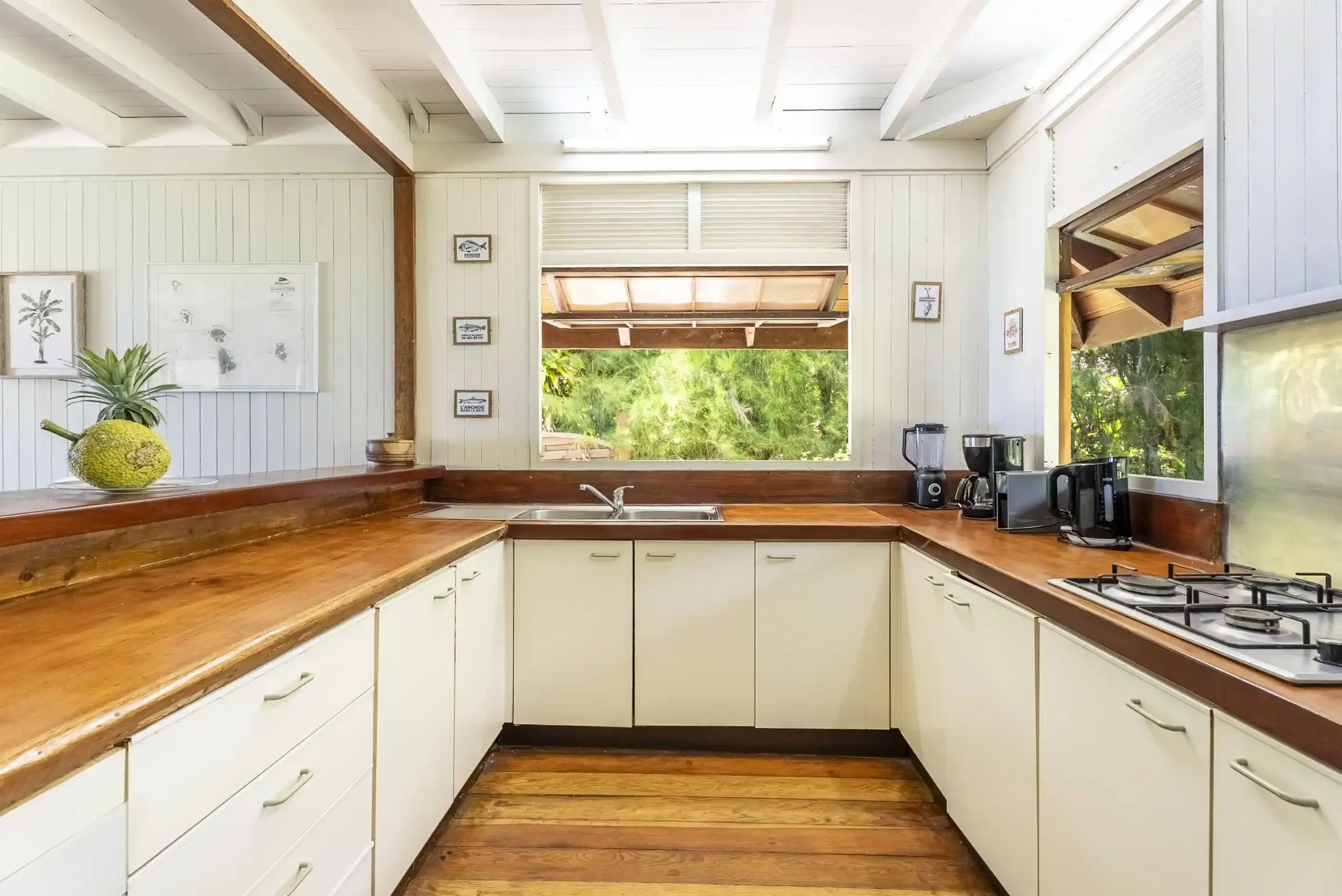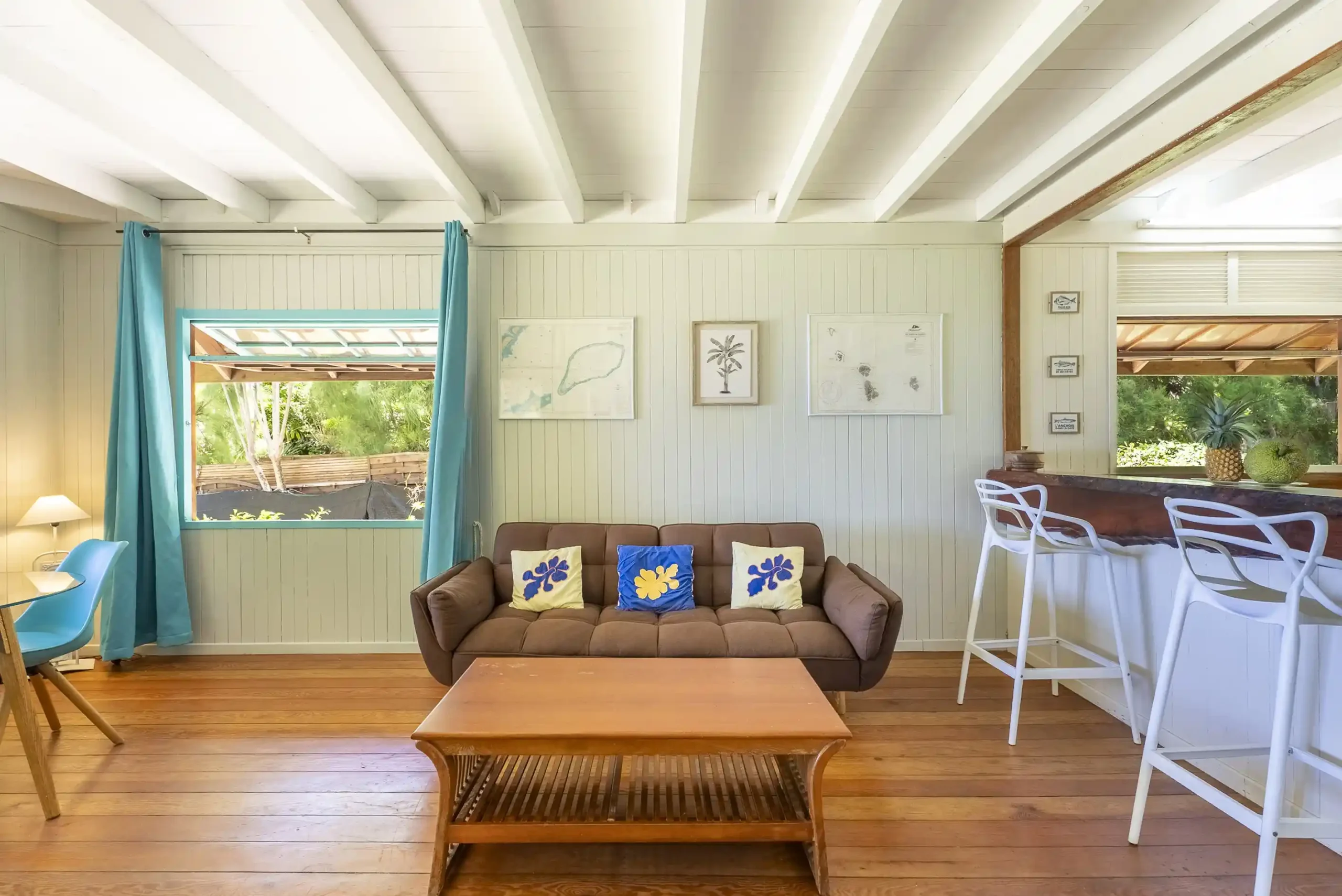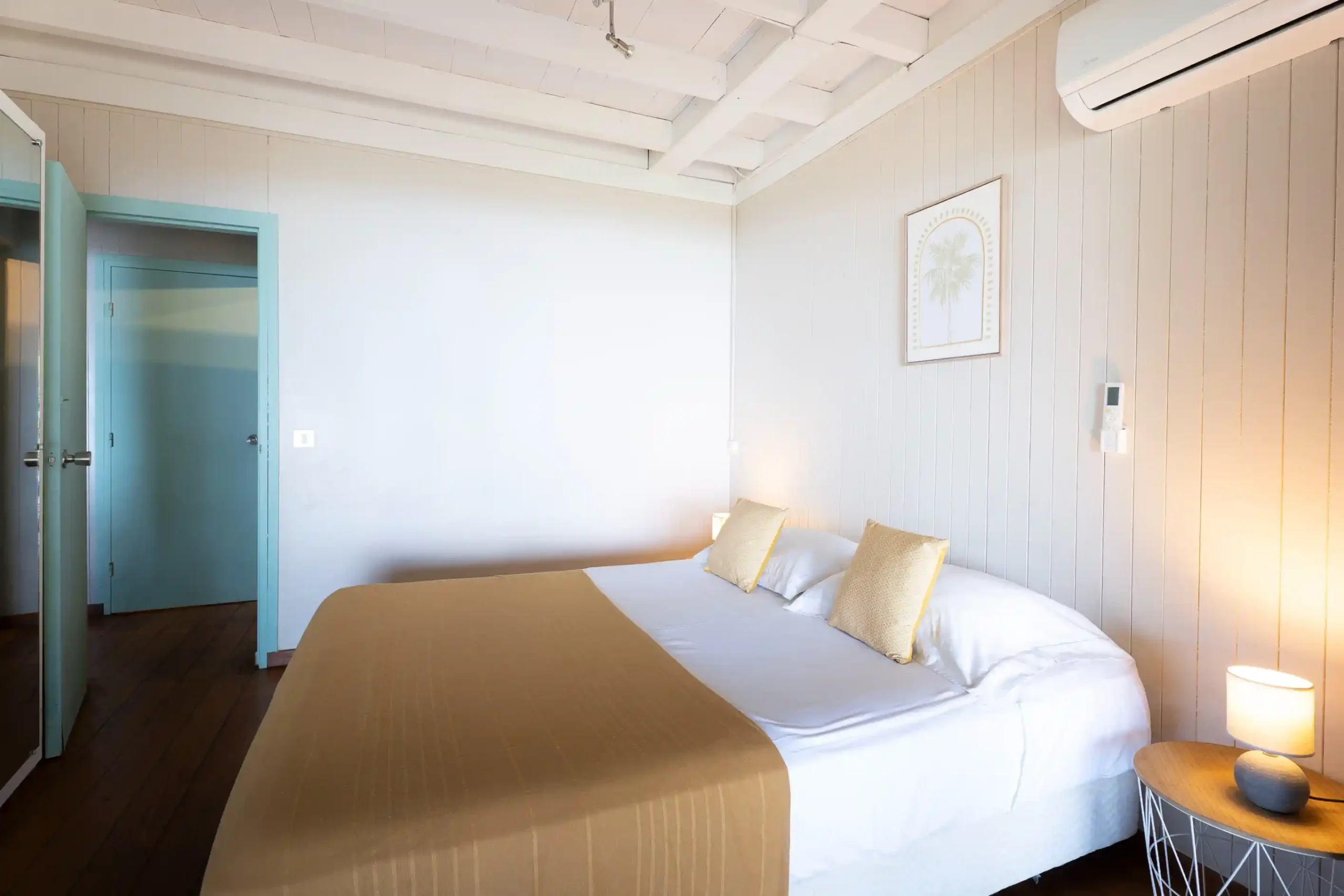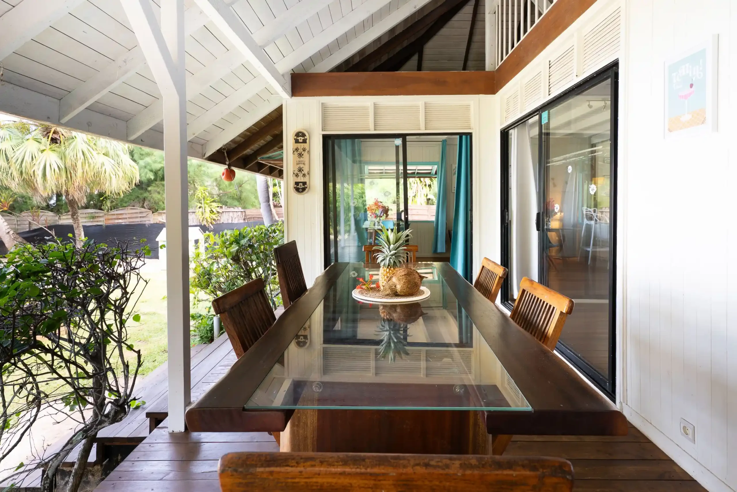 La maison existante, datant des années 80, de style colonial, se compose d’un espace de vie agréable, de deux chambres et de deux salles d’eau. Elle dispose également de deux terrasses face au lagon, idéales pour des matins des plus agréables.