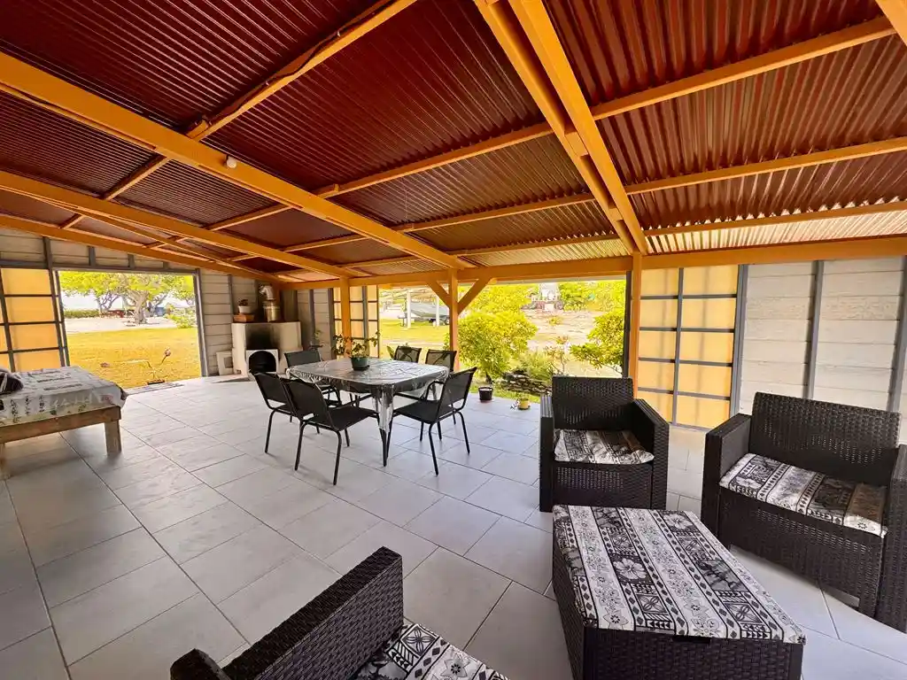 Propriété rare à Fakarava, située sur un atoll classé Réserve de Biosphère UNESCO, offrant un cadre de vie exceptionnel entre nature préservée et calme absolu. Implantée sur un terrain d’environ 6 000 m², la maison développe 135 m² habitables et se compose d’un séjour spacieux avec cuisine ouverte, de plusieurs chambres confortables et d’espaces de vie lumineux et fonctionnels. La propriété bénéficie d’une excellente autonomie grâce à 14 panneaux solaires pour une puissance d’environ 6 000 W, un puits pour la récupération d’eau depuis la nappe phréatique, deux cuves de récupération d’eau de pluie de 7 500 litres chacune et deux pompes assurant une autonomie complète en eau. Le vaste terrain, entièrement exploitable, permet la construction de plusieurs bungalows, idéal pour un projet touristique, une pension de famille, de la location saisonnière ou un projet résidentiel évolutif. Emplacement privilégié à deux pas de la plus belle plage de Fakarava (PK9) et à proximité immédiate de la passe nord, réputée comme l’un des plus beaux spots de plongée au monde. Une opportunité rare, idéale pour résidence principale, secondaire ou investissement touristique à fort potentiel.