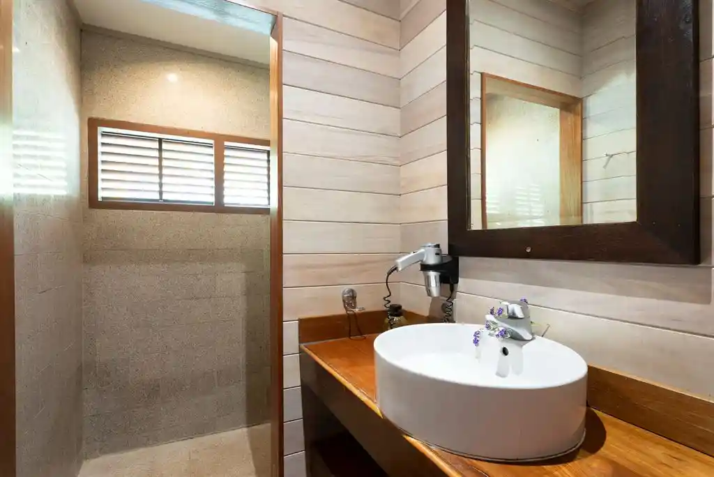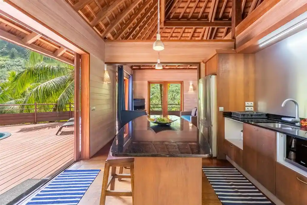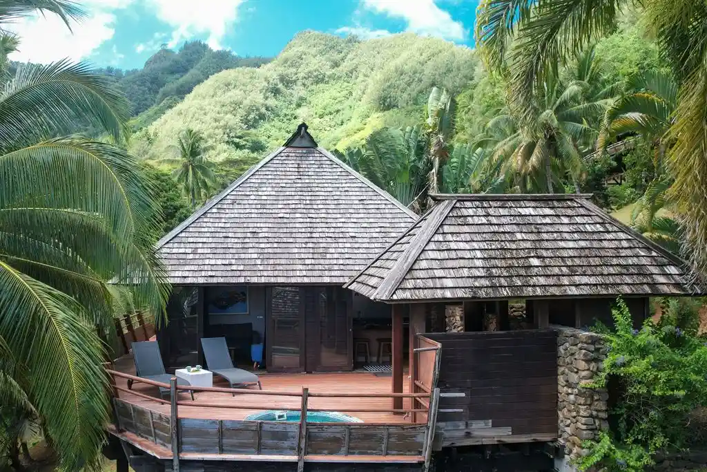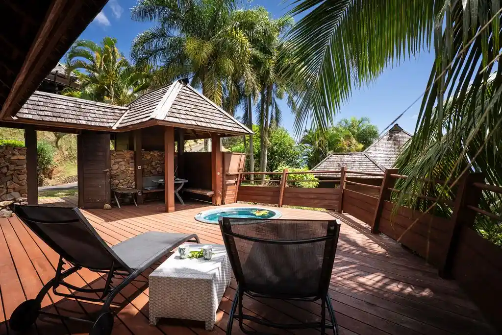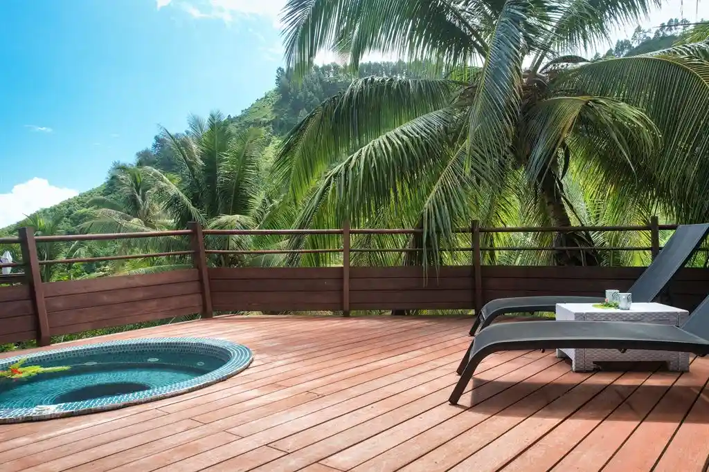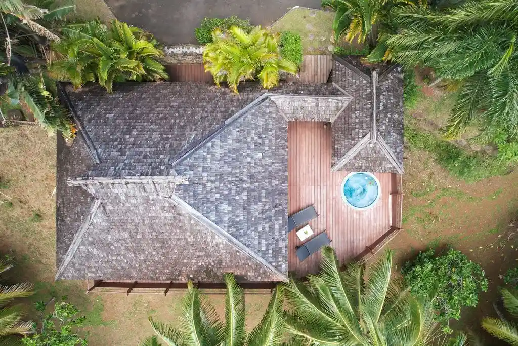 Les espaces extérieurs représentent un véritable avantage, avec une terrasse de 48 m² agrémentée d’un jacuzzi et d’un fare potee, idéale pour profiter pleinement de l’environnement.