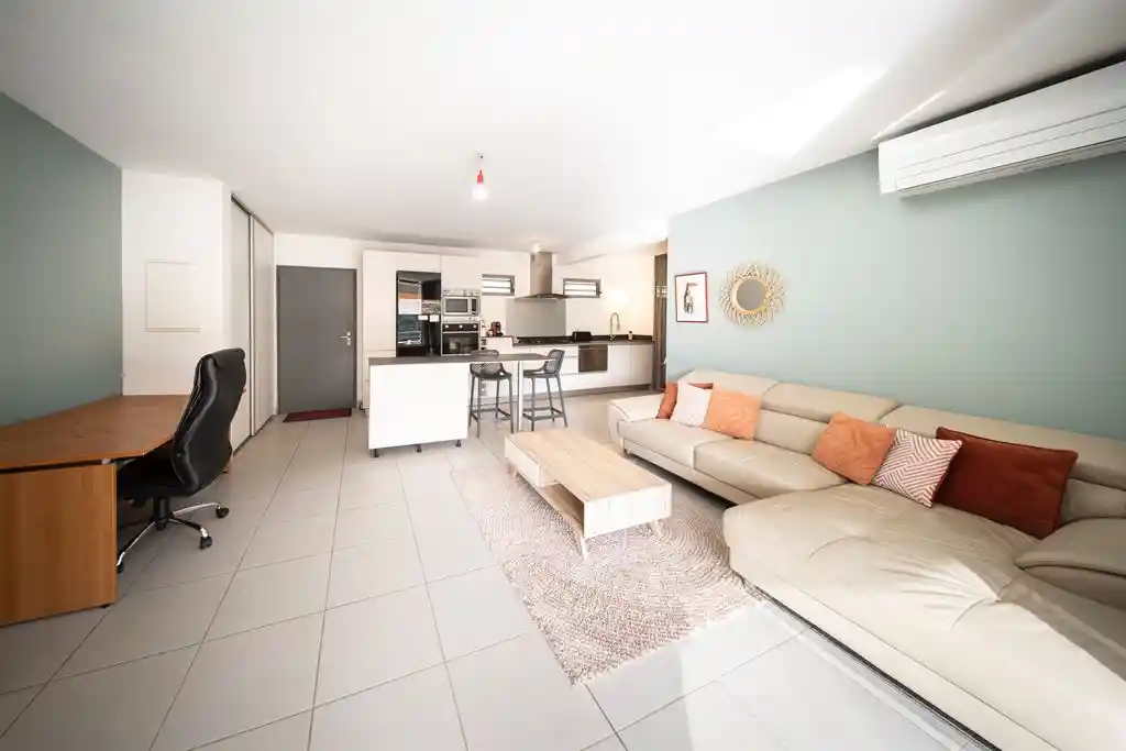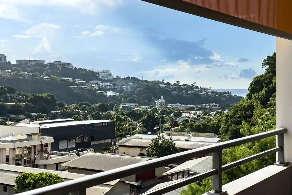Appartement F3 à vendre à Papeete, situé dans une résidence sécurisée avec ascenseur, offrant une surface habitable de 67,10 m² complétée par une terrasse de 18,30 m² exposée sud-ouest et deux places de parking couvertes. Ce bien immobilier se compose d’une entrée avec dégagement, d’un séjour lumineux avec cuisine ouverte, de deux chambres, d’une salle d’eau avec WC et d’une buanderie. La terrasse, idéalement orientée sud-ouest, permet de profiter d’une belle luminosité et d’un espace extérieur agréable pour les repas et moments de détente. La résidence propose des prestations de qualité particulièrement recherchées à Papeete : piscine, salle de sport et espace de jeux pour enfants, offrant un cadre de vie confortable et convivial. L’emplacement est stratégique, à proximité immédiate du centre-ville, des commerces, écoles, services et axes principaux. Les deux parkings couverts situés au rez-de-chaussée constituent un véritable atout pour un achat appartement à Papeete, que ce soit pour une résidence principale ou un investissement locatif en Polynésie française.
