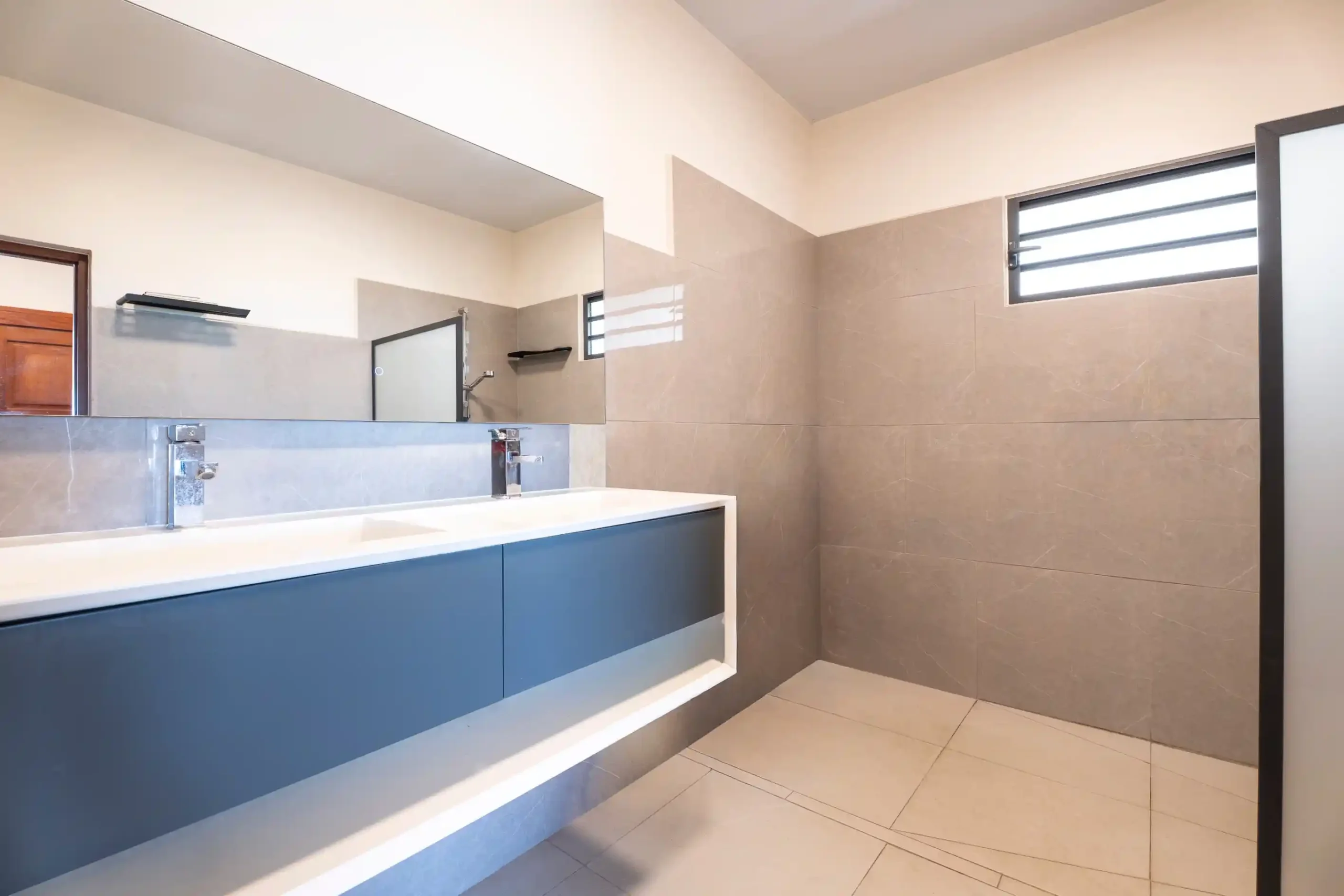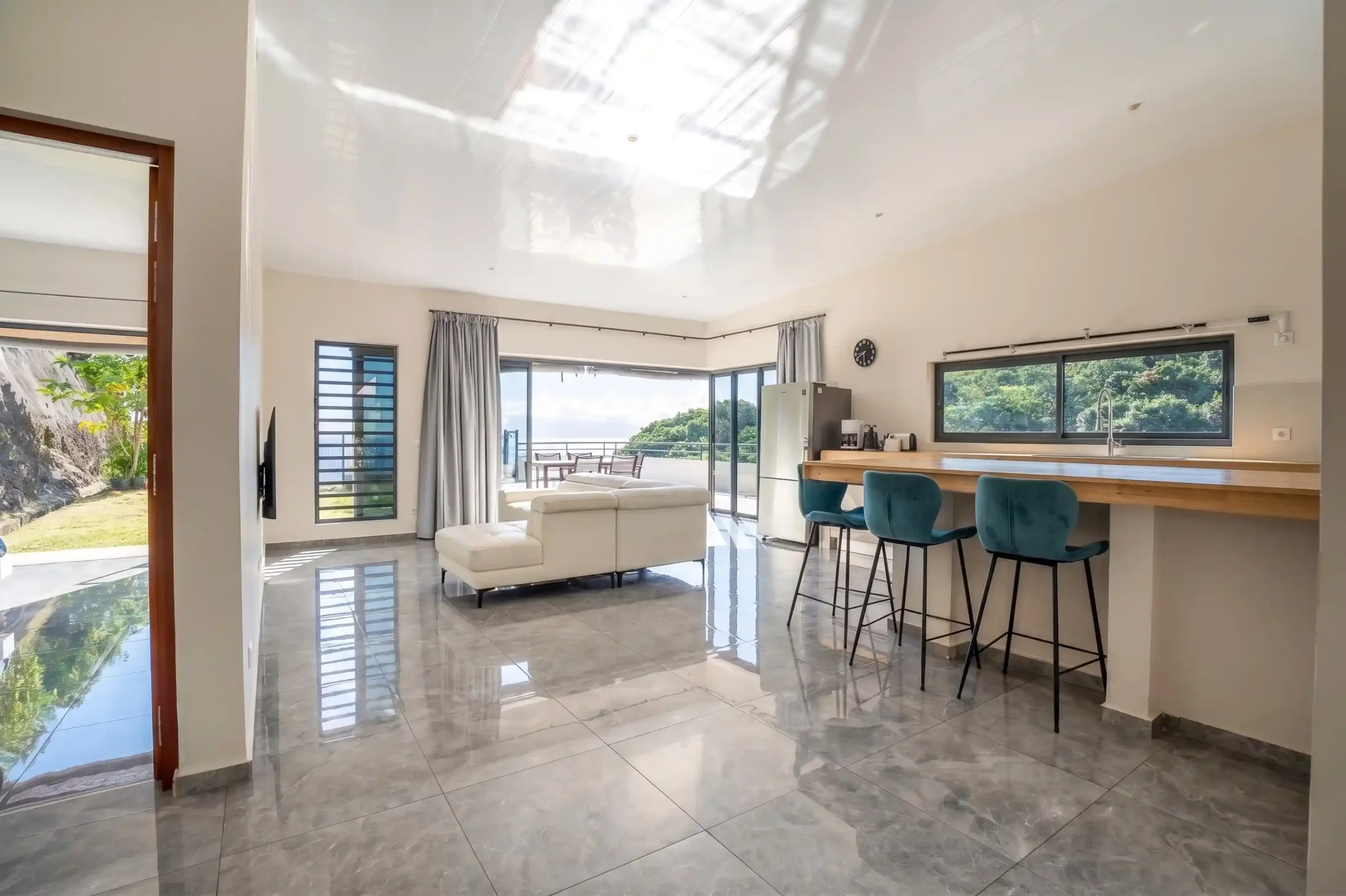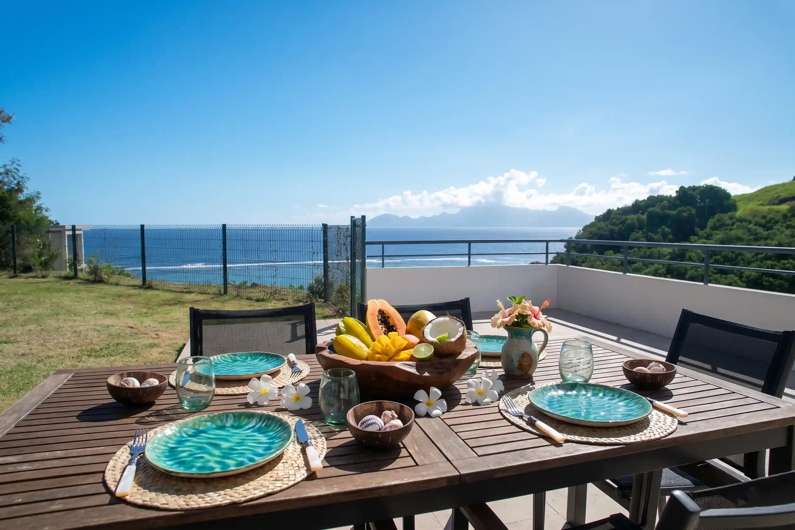 Au rez-de-chaussée, vous découvrirez un bel espace de vie comprenant un séjour lumineux, une cuisine équipée avec arrière-cuisine, ainsi qu’une suite parentale avec dressing et salle d’eau. Une grande terrasse de 40 m² prolonge cet espace et offre une vue dégagée sur l’environnement et Moorea. À l’étage, la maison dispose de trois chambres climatisées ainsi qu’une salle d’eau.