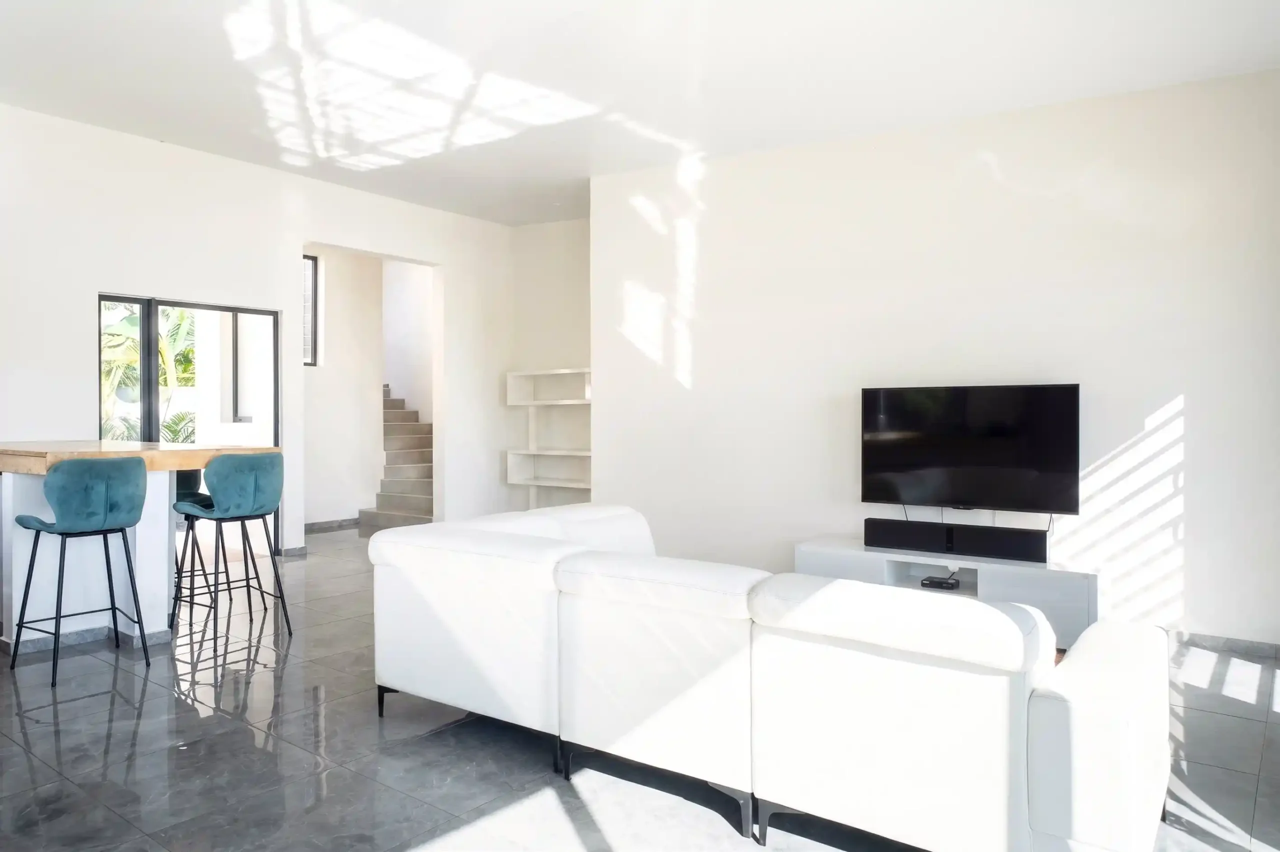Punaauia – Située à seulement deux minutes de la route de ceinture, cette maison récente de type F5 offre un cadre de vie privilégié avec une vue sur Moorea. Édifiée sur un terrain de 1 400 m² en deux plateaux plats, elle développe une surface habitable de 149 m² et bénéficie de prestations modernes et fonctionnelles.