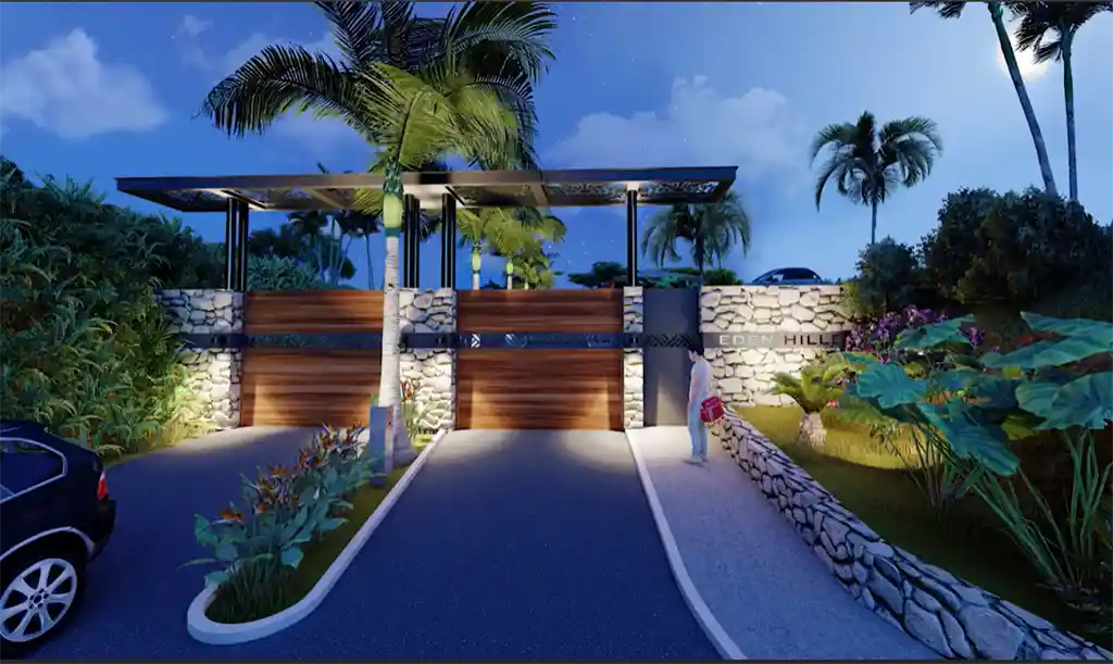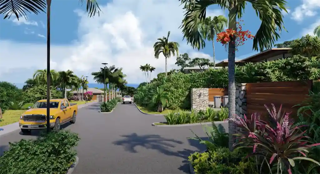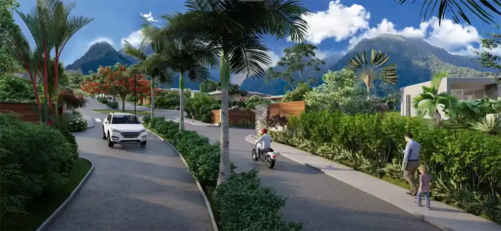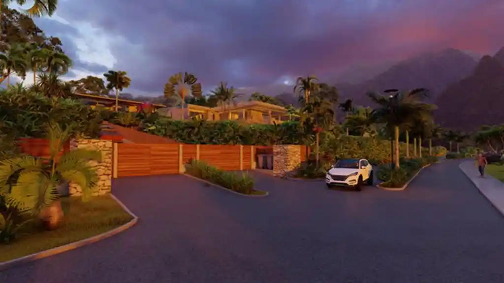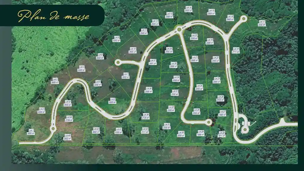 Un environnement superbe en accord avec son écrin naturel verdoyant : – Doubles voies principales avec terre plein central végétalisé – Trottoirs sécurisants bordés de haies – Ronds-points paysagers – Evacuations des eaux de pluie camouflées Des équipements et des services bien pensés : – Résidence sécurisée – Concierge – Aire de jeux pour enfant – Boulodrome – Eclairage public solaire – Local de recyclage – Service de ramassage des ordures à chaque propriété.