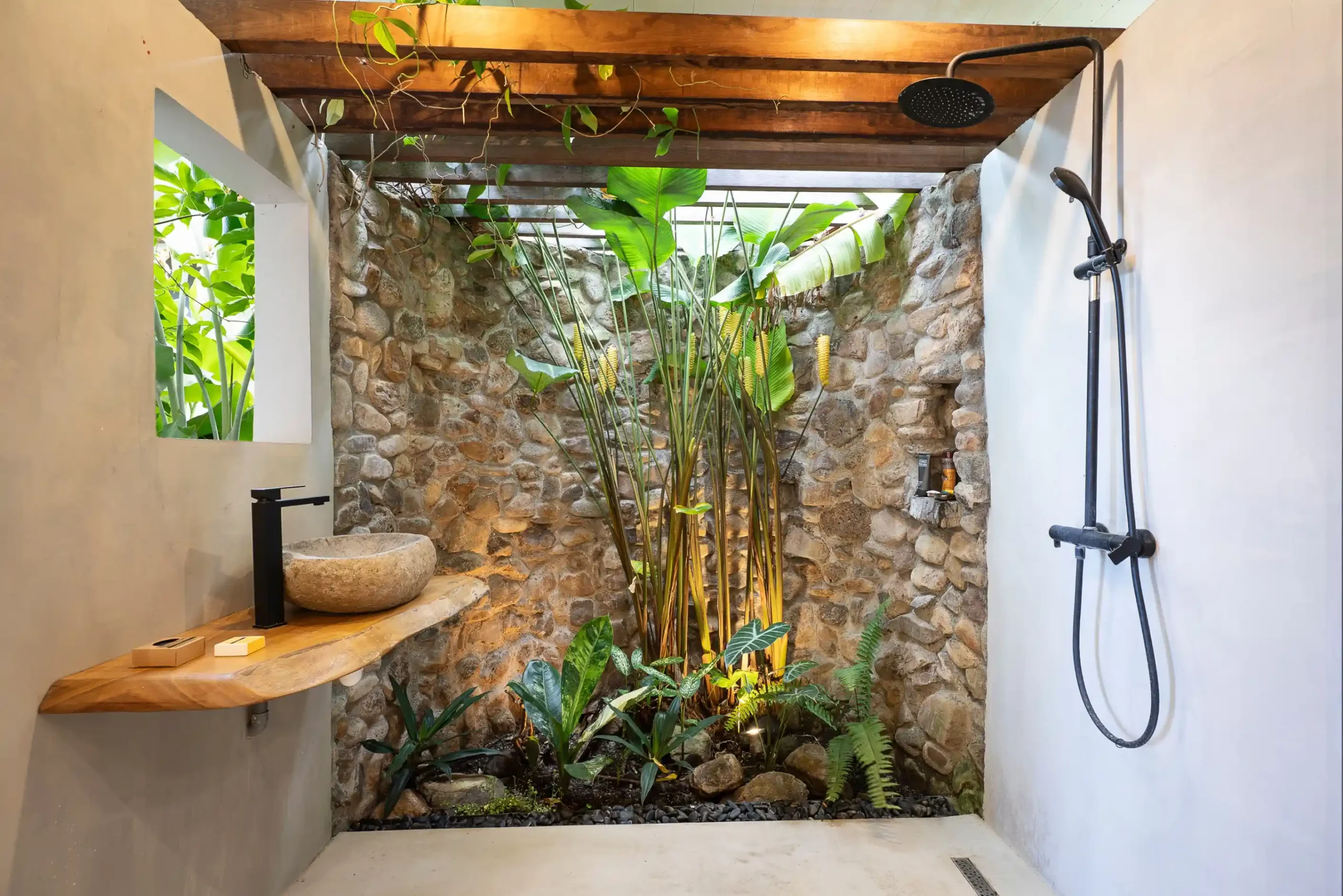 L’espace nuit propose une suite parentale avec grand dressing et salle de bains composée d’une baignoire et d’une douche tropicale, ainsi que deux chambres supplémentaires, une salle d’eau et des WC invités.